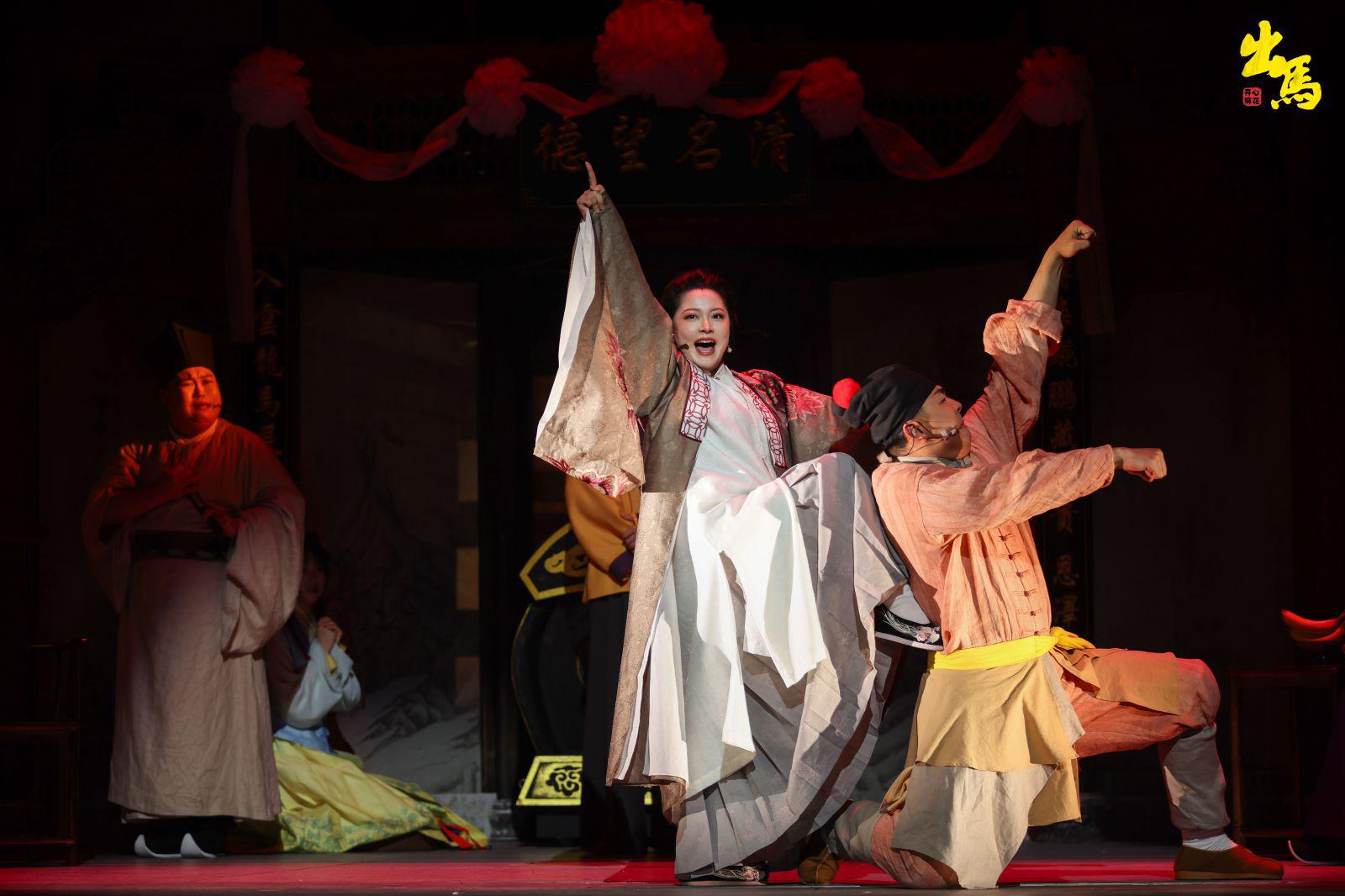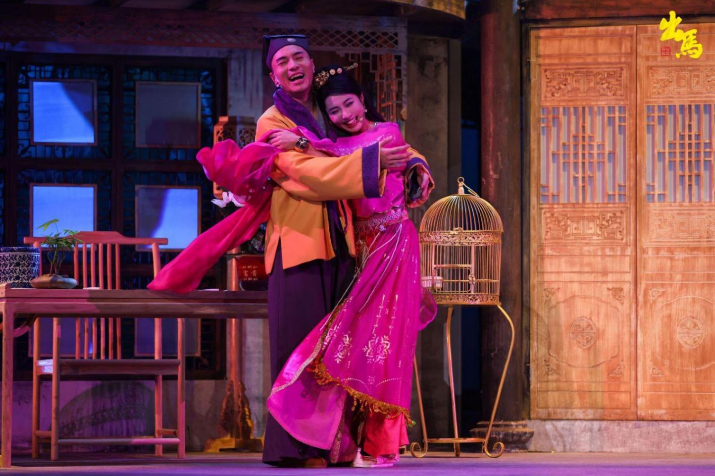 此外,整部劇舞美、服裝都是明朝徽派建筑和文化風格,舞臺根據劇情結構,從喜劇到懸疑和驚悚的轉變做了創新——劇組在三面轉臺的基礎上還疊加了一些小的轉臺,舞臺像魔方一樣,可以來回切換,展現不同的劇情和氛圍。