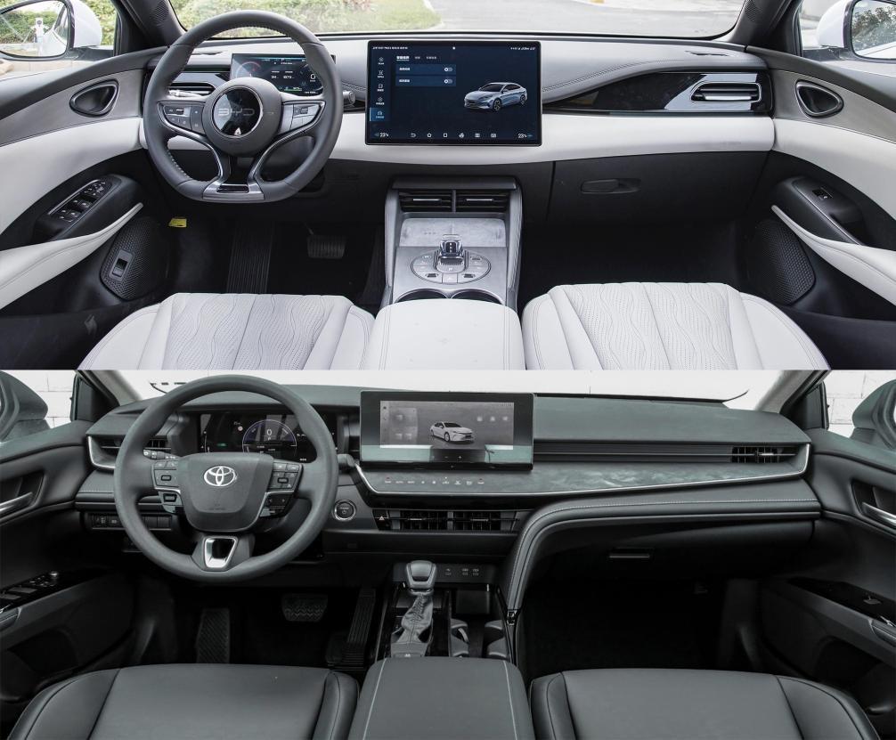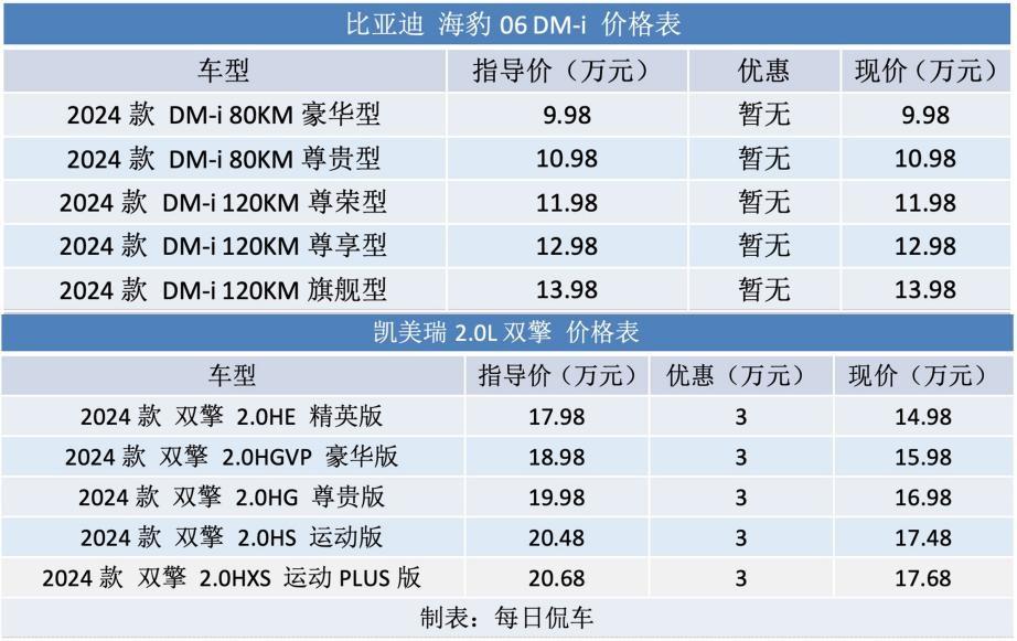 比亞迪秦L和海豹06 DM-i上市之后,以較低的虧電油耗引發市場熱度,出現了訂單火爆的局面。而近期9代凱美瑞全系也推出了至少3萬元的現金優惠,其中2.0L雙擎車型綜合置換補貼后入門價格也來到了13.98萬元,與前兩者的頂配車型價格接近。那么,到底選擇是選擇秦L或海豹06 DM-i的頂配版,還是選擇凱美瑞2.0混動入門版?今天我們就以海豹06 DM-i 120KM旗艦型和凱美瑞 雙擎 2.0HE精英版為例,分析下兩車的異同。(以下所有圖片都是海豹06在前)