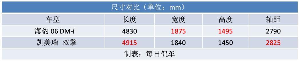 尺寸方面,海豹06 DM-i的軸距是2790mm,嚴格說是緊湊加級,但其實與凱美瑞相差不多,甚至寬度與高度還更充分,兩車外觀看感覺差不多大小。