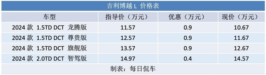 車型選擇方面,博越L 2024款共有4款車型,我們分別對比價格與配置差異: