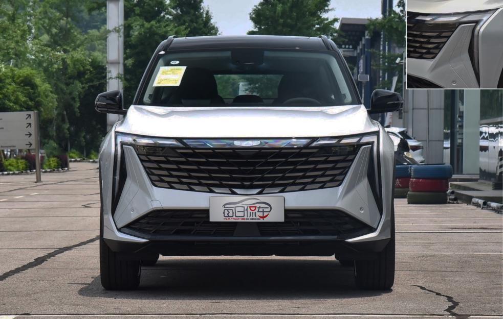 博越L來自CMA架構平臺,與沃爾沃、領克等高端車型同平臺。外形方面比較前衛,巨大的盾型中網內部是參數化設計的魚鱗式格柵,每一片形狀都不同,整體呈現出發散的視覺效果。頂部有貫穿式日行燈,兩側燈帶環繞至側邊,支持迎賓燈語和燈光秀。一體式近遠光燈融合在格柵內部,面積不大,亮度很高,遠光燈有效照射距離達到168米。