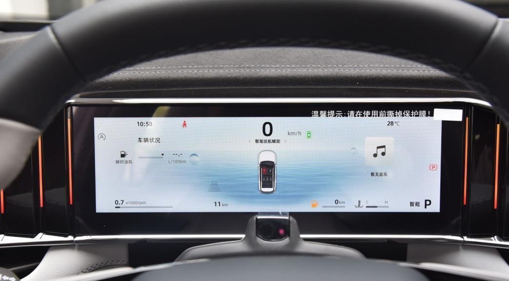 標配的10.25英寸全液晶儀表屏三區顯示邏輯清晰,海洋風格的背景也比較舒適。利用人臉識別攝像頭,實現面部識別和疲勞監測。