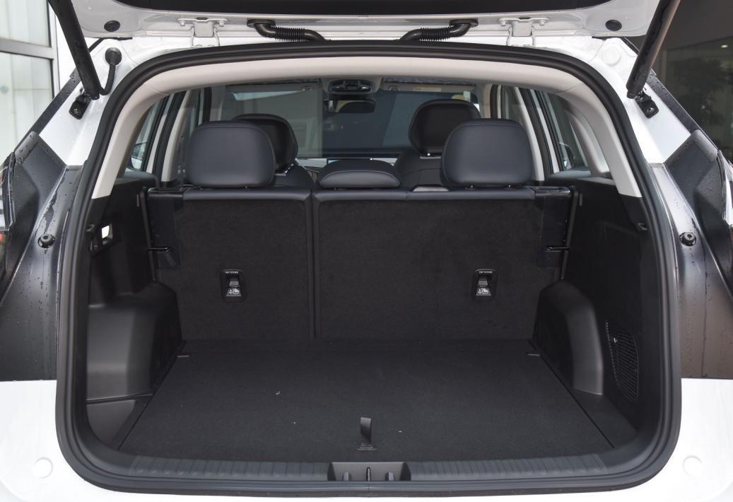 尾廂常規容積為650L,縱深、橫向和高度都比較可觀,長途旅行也很輕松。后排座椅支持4:6比例放倒,平整度較高,最大容積可拓展至1610L。地板下方配備非全尺寸備胎和應急工具,大部分車型配備帶位置記憶的電動尾門。