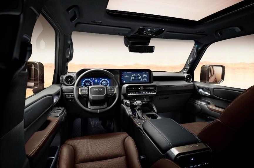 動力上,全新普拉多搭載了2.4T發動機+電動機組成的混動系統,系統綜合功率243kW,最大扭矩630N.m,與之匹配的是8AT變速箱。同時,全新普拉多還擁有托森限滑式中央差速器的全時四驅系統+電控機械式后橋差速器鎖等硬核越野配置。