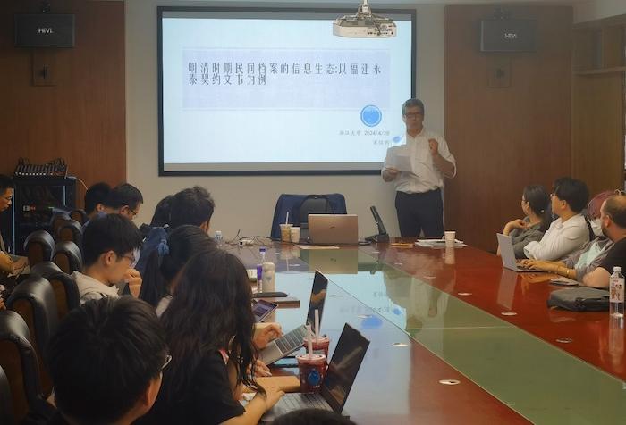 2024年4月28日下午3點,宋怡明教授在浙江大學(xué)歷史學(xué)院開展講座,其演講題目為“民間檔案的信息生態(tài)——以永泰契約文書為例”。浙江大學(xué)歷史學(xué)院杜正貞教授主持講座。