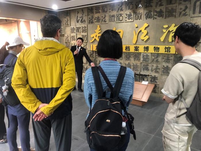 4月30日上午,宋教授一行來到龍泉司法檔案博物館。博物館位于龍泉市人民法院,主要介紹與展覽晚清民國的龍泉司法檔案。宋教授依序參觀了館內(nèi)的展覽,對其中未能詳細說明其概念的使用詞如花廳等提出了疑問,并建議進一步改進。宋教授系首次來館,對其中展出的司法檔案內(nèi)容以及分析的案例十分感興趣,特別是涉及婚姻,親屬關(guān)系等與家庭、宗族等相關(guān)的案件介紹,因而拍攝了諸多照片素材以備日后在哈佛大學(xué)授課時使用。