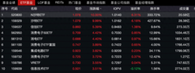 2只沙特ETF上市首日被“買爆”,雙雙漲停。