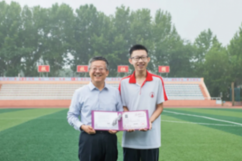 清華篤實(shí)書院院長張雄教授(左)為武邑中學(xué)呂昊天(右)頒發(fā)錄取通知書。