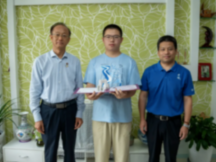清華秀鐘書院院長胡洪營教授(左)、清華山西招生組組長岳東北(右)為和順縣第一中學(xué)杜勁輝(中)頒發(fā)錄取通知書。