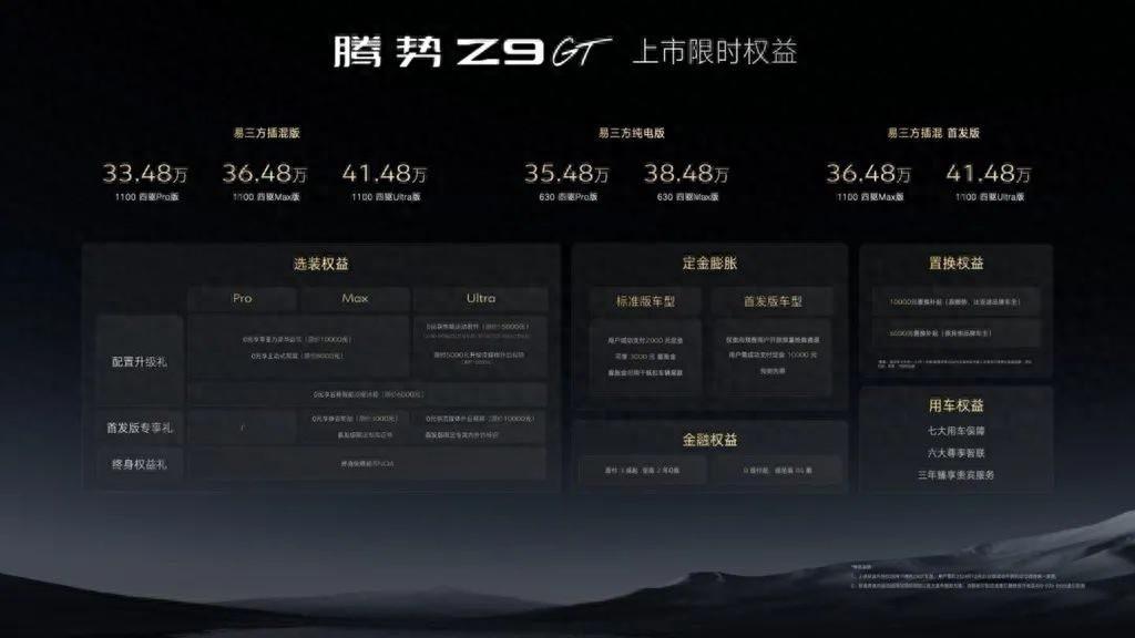 開啟預售十天就獲得超1.5萬輛的訂單量,作為一匹黑馬,騰勢Z9GT可謂是打響了第一槍。9月20日,騰勢汽車旗下“D級智能豪華旗艦GT”騰勢Z9GT正式上市,其中插混版售價33.48萬、36.48萬(首發版)、41.48萬元(首發版);純電版35.48萬和38.48萬元。