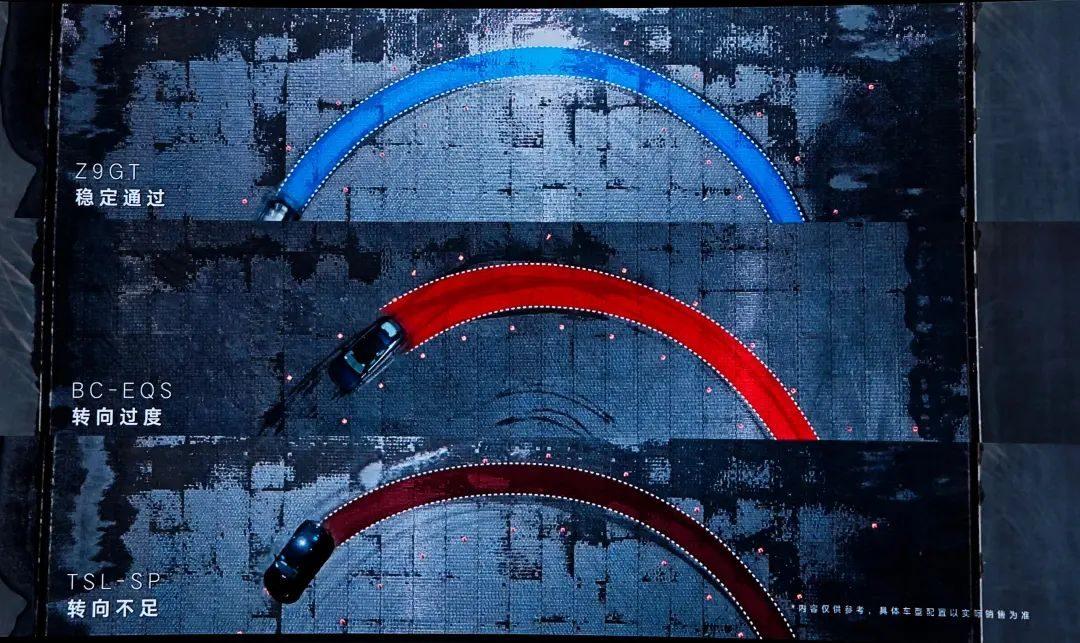 比較值得關注的是高速下的安全問題。騰勢Z9GT可以在140km/h的速度下,前輪爆胎后通過底層算法VMC快速響應并分配車輪扭矩,保證車身穩定并且穩步剎停;當輪胎出現與地面摩擦力不同時,三個驅動電機及時調整,在打滑路段增加車身可控性。