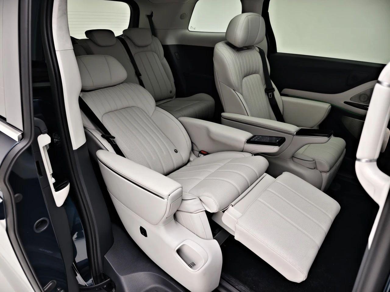 二排座椅用上了SPA級零重力座椅,支持100mm腿托,還配備了6英寸屏幕,除了可以控制座椅通風、加熱、按摩以外,還可以控制吸頂屏、冰箱溫度等。