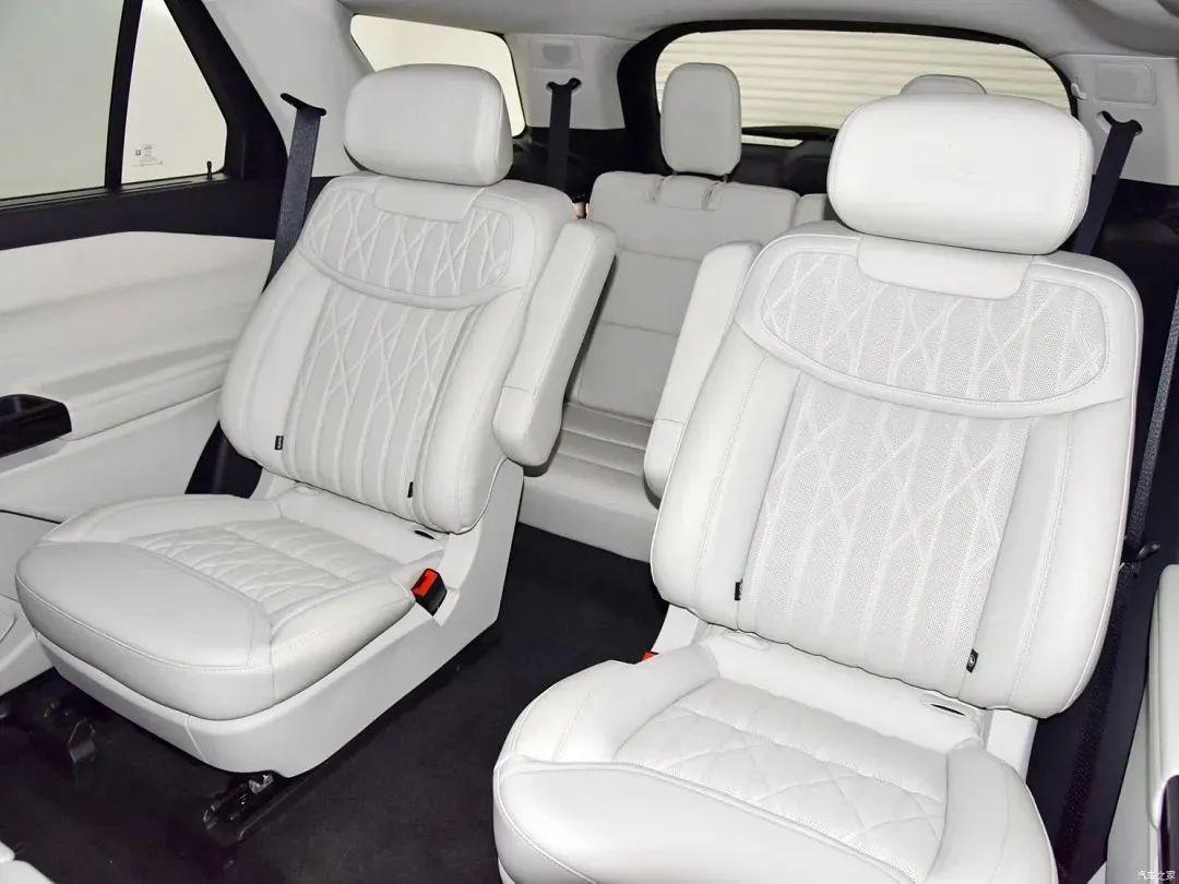 當然,探險者最大的亮點還是他的空間和舒適性。全新福特探險者作為一臺大六座SUV,后排兩張獨立座椅規格相當高,都快可以媲美一些同價位的MPV車型了,而且新車的第三排座椅盡管是兩座,但也是連體式座椅,再翻倒之后可以形成一個基本平整的巨大后備箱空間,昆侖巔峰版車型大量使用翻毛皮材質點綴,中央通道、中控臺等位置上加入等高線。