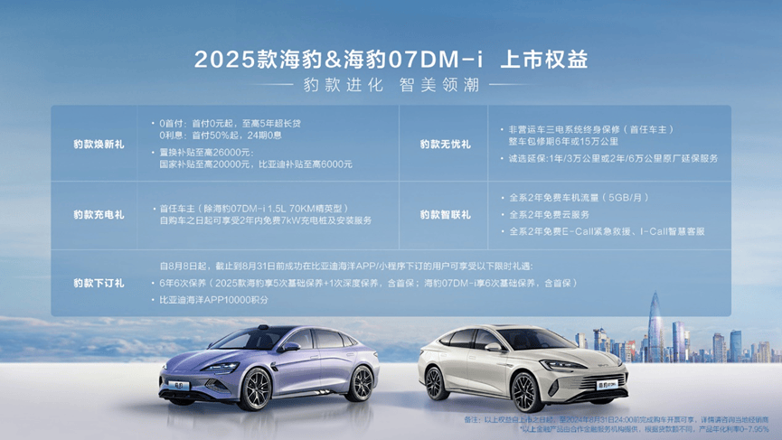 8月8日,比亞迪海洋網“雙豹”齊發,2025款海豹、海豹07DM-i正式上市。此次“雙豹”車型完成了e平臺3.0 Evo和第五代DM兩大全新技術升級,實現了從核心技術到效率、性能、智能、美學、舒享、安全等方面的全面躍升,為用戶帶來更好的用車體驗和更高的產品價值。