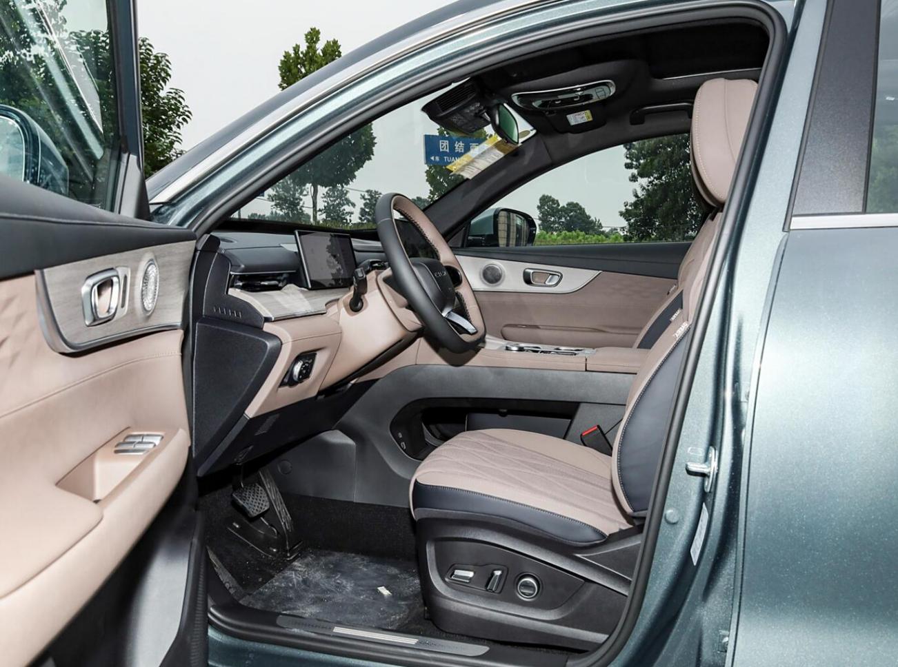 內飾方面:新車有兩種配色可選,全車軟包區域面積達到了78.9%。AI大模型智能座艙擁有10.25英寸全液晶儀表盤和15.6英寸超大2.5K高清屏,搭載雄獅車載系統和Sony 音響,支持語音識別、多指飛屏、Carplay/HUAWEI HiCar等功能。部分車型增加了多色氛圍燈、50w無線充電、抬頭顯示、高通8155芯片、面部識別等豪華配置。此外,部分車型還配備了零重力副駕,擁有10點按摩和腿托,并提供5種按摩模式。