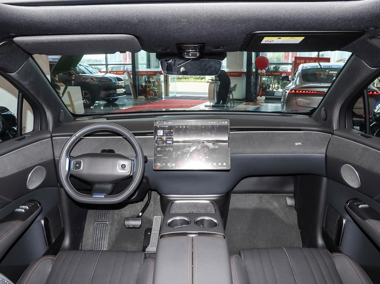 從內飾上看,有三種配色可選,采用簡潔布局,物理按鍵并不多。前方配有15.4英寸中控屏和28.8英寸抬頭顯示系統,搭載了高通驍龍8155車機芯片。并標配220v電源、手機無線充電、12v行李箱電源、256色氛圍燈、前排零重力座椅、方向盤加熱、全景天窗、前排側窗多層隔音玻璃等功能。