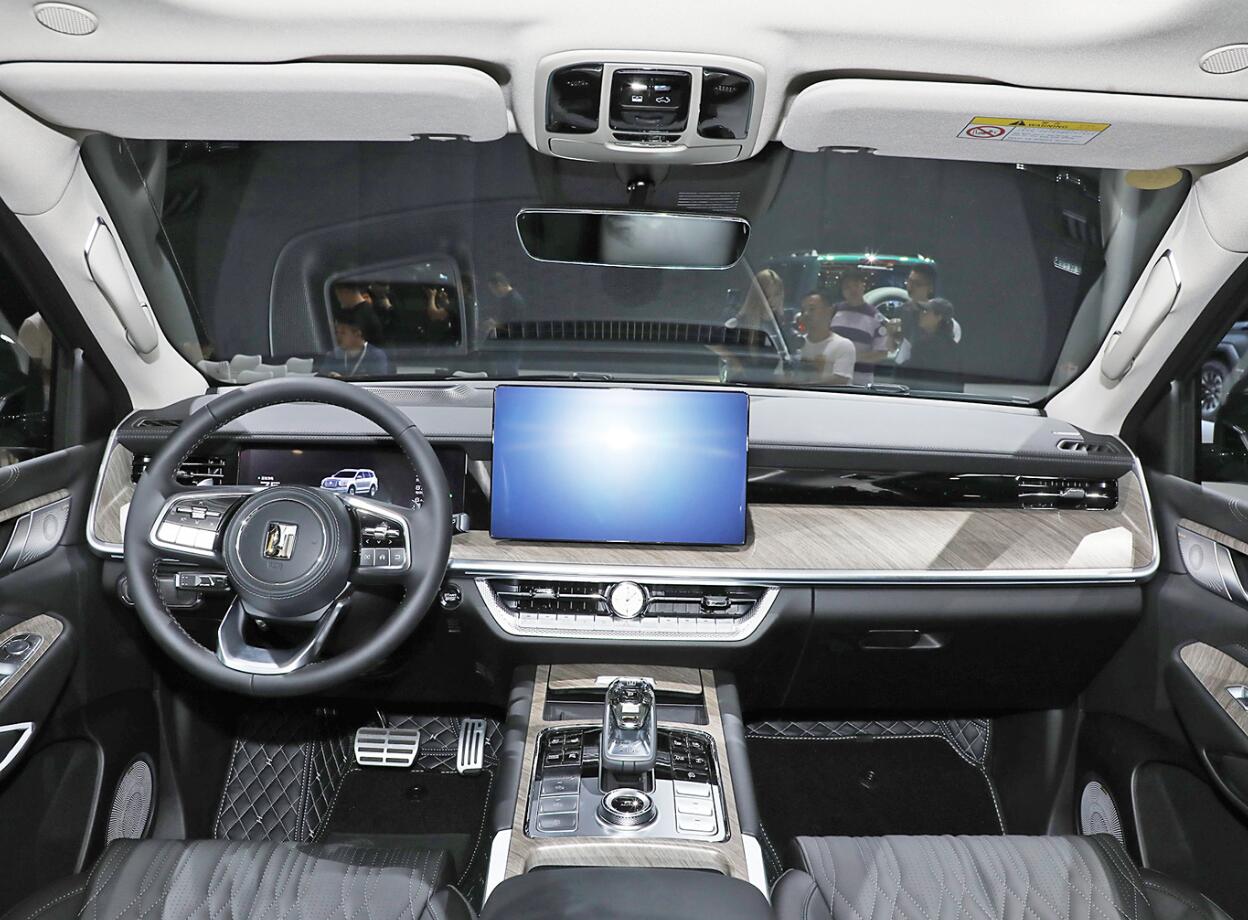 內飾方面:采用黑色主題,方向盤擁有加熱、換擋、記憶、電動調節功能,還保留了大量物理按鍵。車機系統采用了12.3英寸液晶儀表+14.6英寸中控屏+7英寸后排液晶屏。同時,配有220v電源、12v電源接口、手機無線充電、后排獨立空調、多色氛圍燈、燕飛利仕音響、車載空氣凈化器等配置。