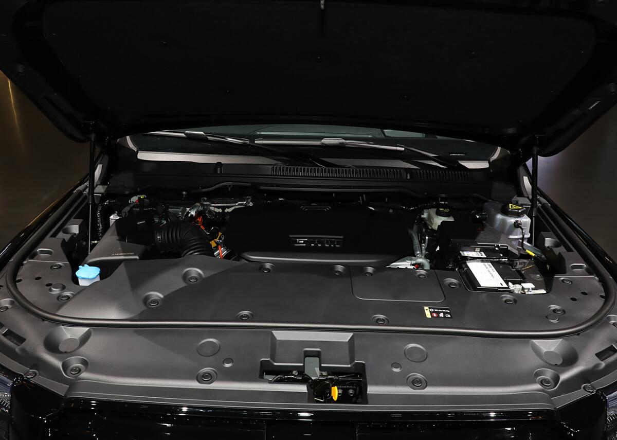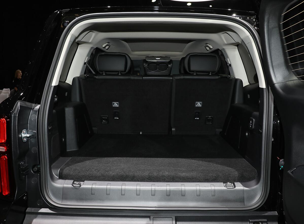 外觀方面:新車采用了黑化風格。前臉配備寬大的中網,兩側是個性化大燈,下包圍非常硬朗。側面,腰線粗獷飽滿,還配有電動腳踏。尾部采用方正布局,兩邊配有豎狀尾燈,上方還有擾流板和高位剎車燈,還配備了電動尾門、拖車取電口、拖車鉤,最大牽引質量為2.5噸。