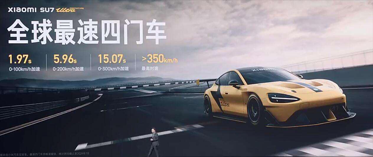小米SU7 Ultra搭載Triple Motor三具電動馬達,并且爆發驚人的1548PS馬力,官方0-100KM/H加速時間為1.97秒,0-200KM/H為5.96秒,0-300KM/H為15.07秒,極速可達 350KM/H,要知道這極速與性能是完全吊打了保時捷Taycan GT(最速量產電動轎跑之一)!但嘴上說說沒用,在今年10月份SU7 Ultra的原型車已經在紐伯林賽道刷圈速,小米汽車的目標就是要打破保時捷Taycan GT的記錄(7.07.55),成為地表最速量產電動四門車!