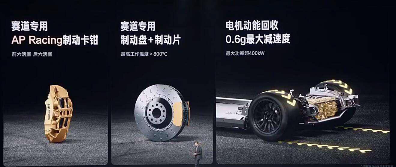 除了懸架進行了強化與升級以外,SU7 Ultra的剎車也直接用上了AP Racing賽用競技剎車系統(包括Caliper卡鉗與Disc Brake碟盤),性能部分小米汽車測試,100-0KM/H的減速只需短短的25m剎車距離,非常夸張。此外,SU7 Ultra也會用上輕量化的輪圈,高性能輪胎,以確保可以應付1584PS的馬力。