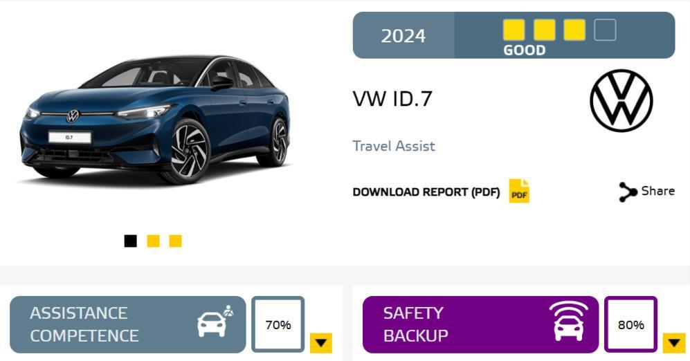 大眾ID.7和沃爾沃EC40則獲得“良好”(Good)評級,Euro NCAP表示因兩款車子不具備寶馬i5和梅賽德斯奔馳C-Class的一些復雜及穩定功能,但整體表現不錯。