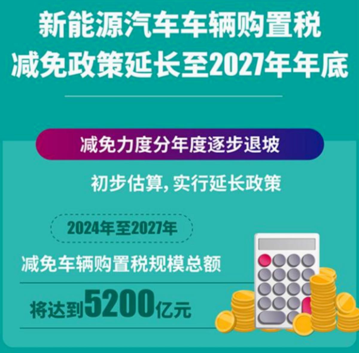 據悉,新能源汽車購置稅減免政策將會延長至2027年,但減免力度會分年度逐步退坡。