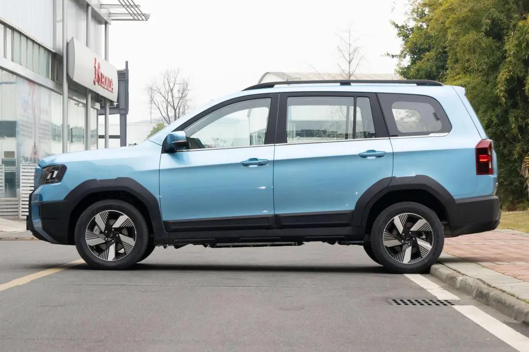 首先,從外觀上看,斯威大虎EDi給人的第一印象是相當硬朗。它的引擎蓋和前保險杠采用了粗壯的線條設計,方正的大燈組增添了不少力量感。倒梯形的中網雖然不大,但配合車身同色的塑料飾板,整體造型顯得中規中矩。側面來看,車身線條較為方正,黑色的下護板和輪眉讓它看起來更具SUV的氣質。