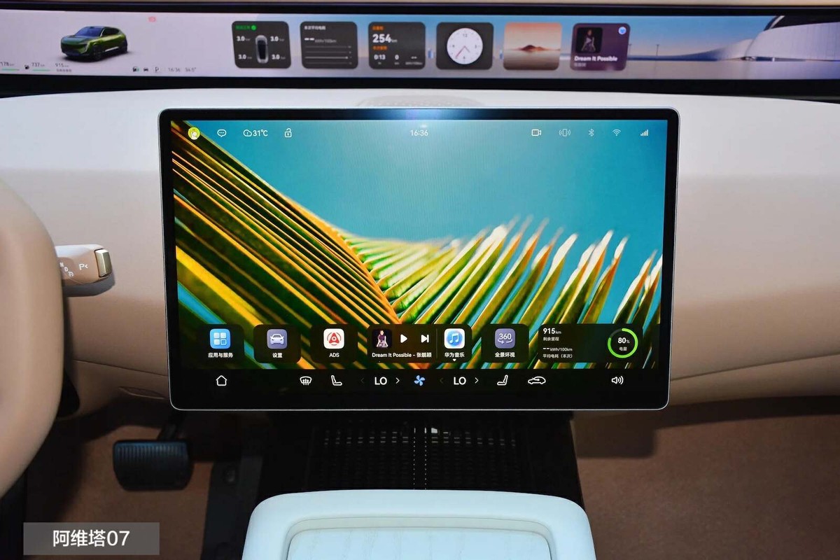 兩款車的座艙風(fēng)格與外觀都極為匹配,阿維塔07從扁平的D型方向盤到取代傳統(tǒng)儀表的35.4英寸環(huán)繞式遠(yuǎn)端屏,再到對應(yīng)電子后視攝像頭的額外雙屏(選裝),都在強(qiáng)調(diào)科幻或者說是科技味道。同時(shí),Harmony OS鴻蒙智能座艙還有一塊15.6英寸觸控屏,組成了四屏聯(lián)動(dòng),并支持與華為設(shè)備的接力與投屏,在智能交互體驗(yàn)上會更流暢,應(yīng)用也更加豐富。