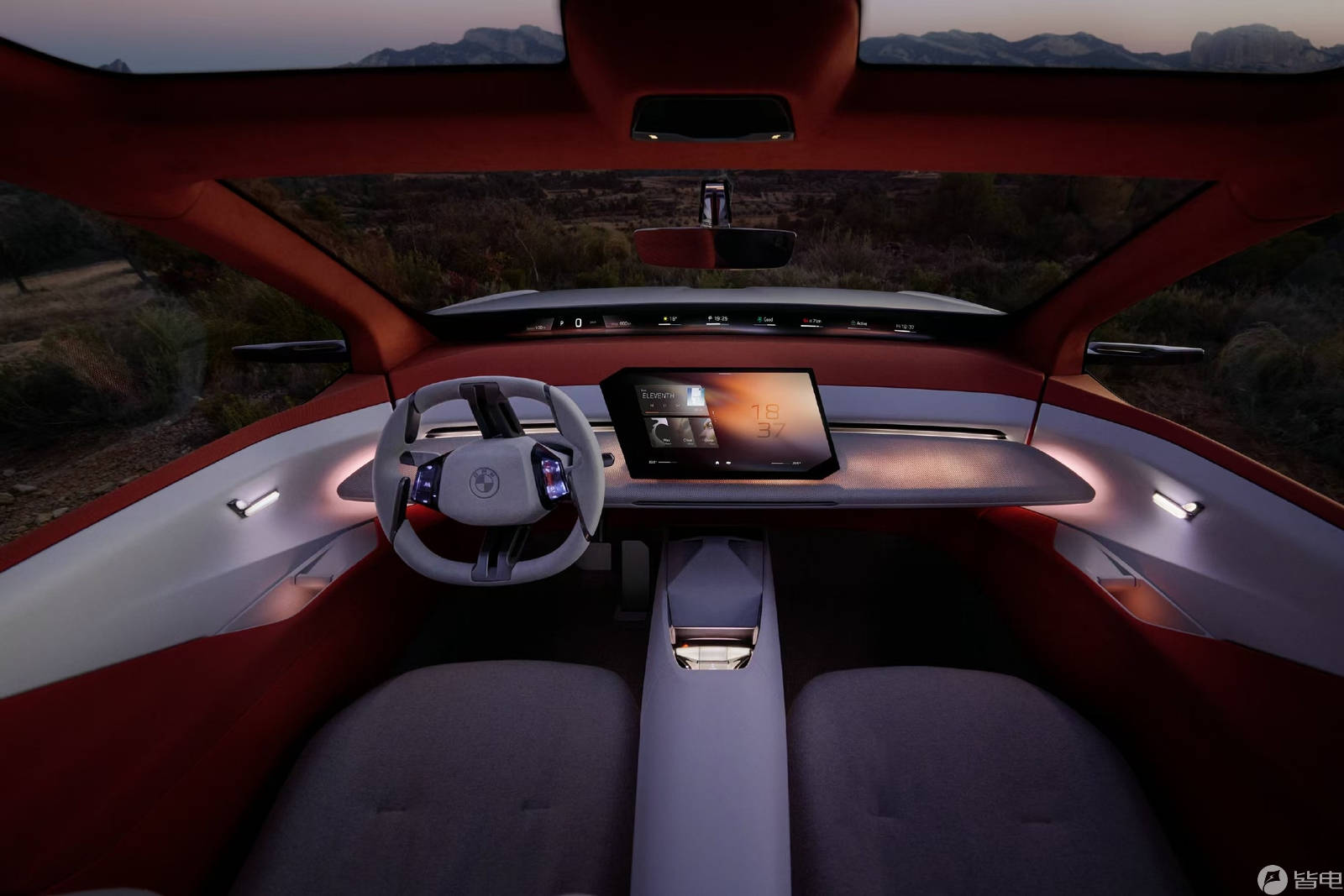 該座艙集成了視平線全景顯示,由超近距投影技術(shù)打造,提供大面積、高精度、遠視野的顯示效果,替代傳統(tǒng)儀表盤;采用“視覺錐“屏幕概念,BMW首創(chuàng)向心中控和3D抬頭顯示的特殊形狀、角度和精度,做到以駕駛員為中心;超感智控方向盤采用“主動觸覺反饋”和“分層顯示”兩項創(chuàng)新技術(shù),使其可觸摸、可感知、可視化;首創(chuàng)車內(nèi)跨屏隔空投送技術(shù),還可定制不同功能區(qū)。
