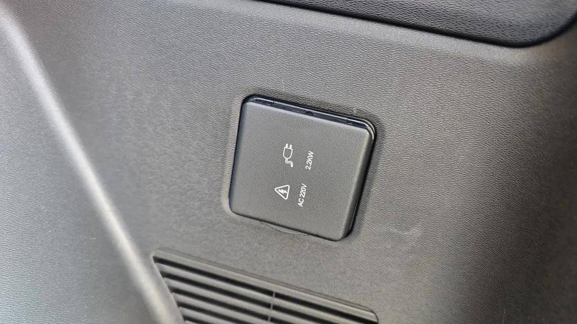 對外放電功能可能是目前消費者比較喜歡的功能之一了,車輛擁有兩個對外放電接口,其一為車輛后備箱中2.2kW的220V插口;另一個是車輛的充電口,該充電口的輸出功率可以達到6.6kW,在野營時使用一些小電器毫無壓力。