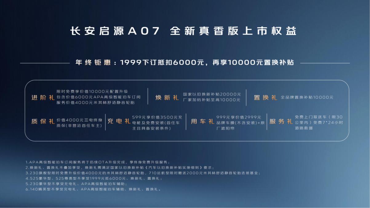 長安啟源A07全新真香版的上市,不僅是對長安啟源創新實力的展示,更是其“以客戶為中心”理念的體現。為了慶祝長安造車40年,長安啟源推出了多項優惠政策,包括1999元抵6000元購車款和10000元置換補貼等。這些舉措不僅體現了長安啟源對用戶的關懷,更展示了其在數智新汽車時代的創新實力和市場競爭力。