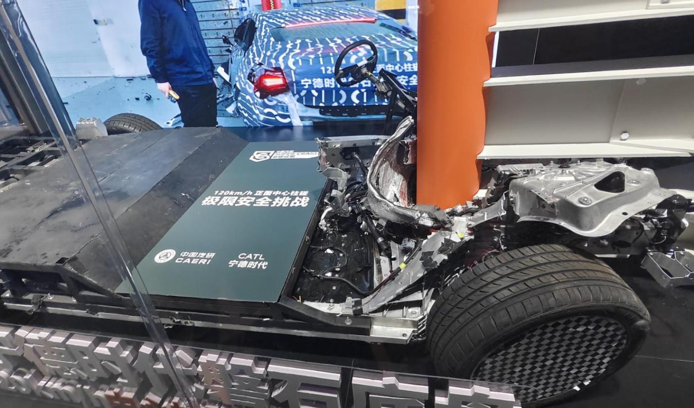國內權威碰撞檢測機構C-NCAP的正面碰撞測評速度為56km/h,而磐石底盤進行的碰撞測試速度為120km/h,這個速度下的正面碰撞能量相當于C-NCAP全寬正碰要求的4.6倍,中心柱碰時底盤單位面積碰撞壓力更是達到全寬正碰工況的21倍。寧德時代選擇以120km/h的車速進行碰撞測試,顯示了對磐石底盤安全防護水平的充分信心。