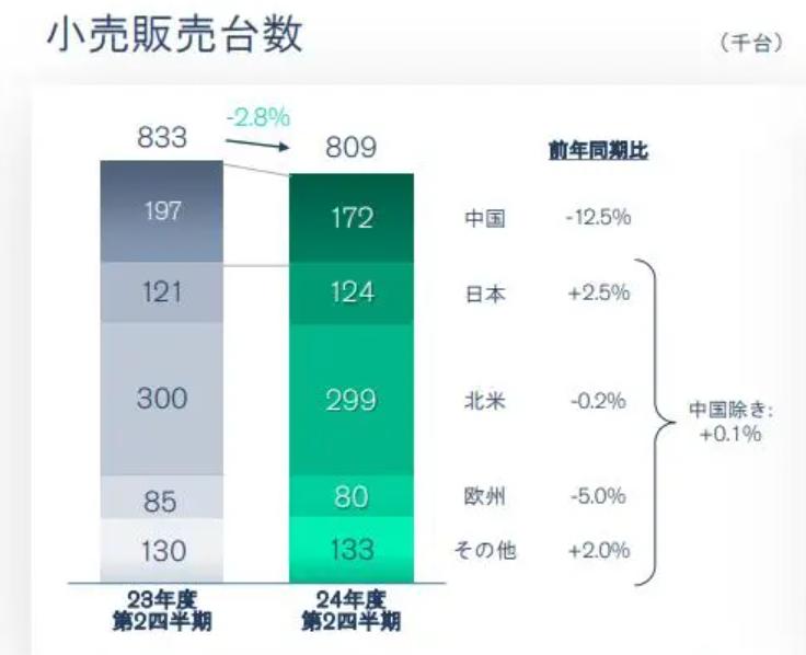 另外,如果不計在中國市場銷量下滑12.5%,那么日產汽車在全球其他區域的總銷量還處于增長狀態(0.1%)。