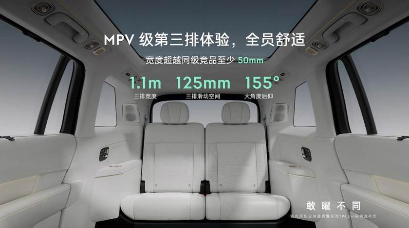 新車座艙用上了全新樣式的方向盤,質感很不錯,中控觸摸屏達30英寸(內置Flyme Auto系統),分辨率為6K,整體挺有“理想味”;后排的配置更為豐富,車頂同樣擁有30英寸吸頂屏幕,兩張獨立座椅支持電動調節、通風、加熱、按摩,還有腿托、扶手、小桌板等。