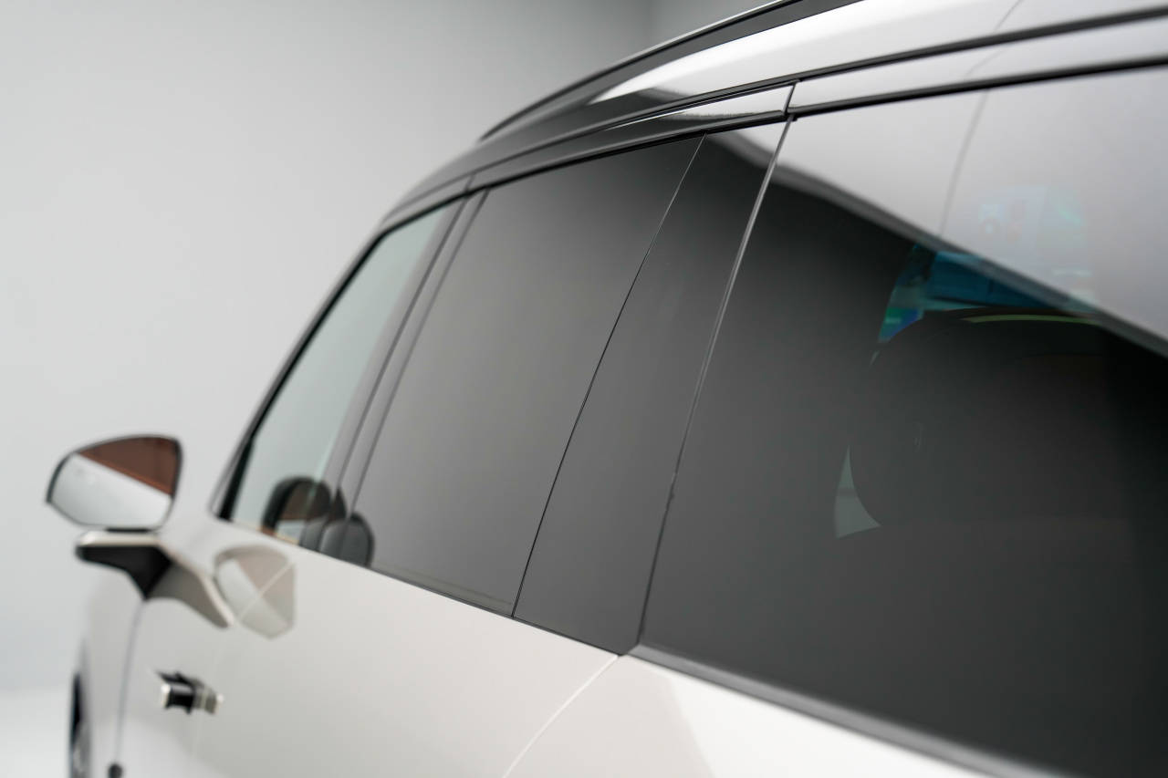 5、 側面設計也主要是以型面為主,有隱藏水切,突出領克900的純平感,比如上半部分采用了Flush Door 2.0設計,從A柱到D柱都是純平設計,有很好的光影效果。