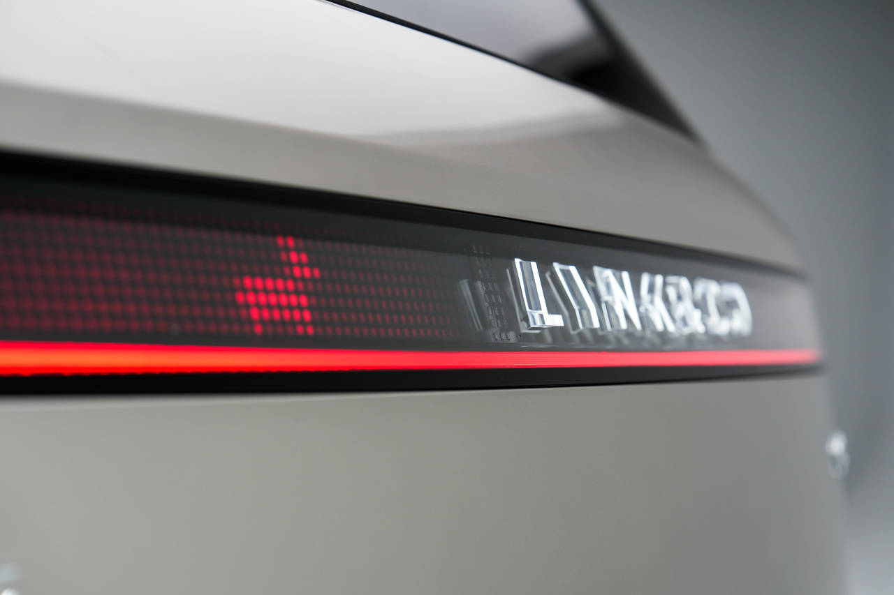 7、 尾燈同樣是貫穿式燈組,但不再是領克THE NEXT DAY概念車上那種纖細燈組,而是回歸了寬幅設計,這是因為尾燈依然提供數字像素交互功能,可以根據情景切換樣式。