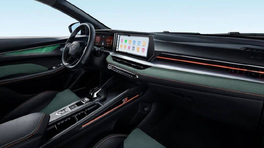 內飾方面,吉利繽瑞COOL配備了由10.25英寸液晶儀表、12.3英寸中控屏組成的懸浮式雙聯屏,搭載E02新一代高性能數字座艙平臺,支持智能AI語音交互、三指飛屏、高德智慧導航、540度全景影像等一系列實用功能。電子換擋桿造型個性,不僅具備智能管理擋位邏輯,其手柄還自帶了燈光功能,點亮后非常酷炫。除此之外,還擁有類麂皮雙拼內飾、類麂皮環抱式競技座椅、72色流光氛圍燈等一系列高價值配置,整體的視覺觀感非常上檔次,可帶來越級的視覺沖擊力。