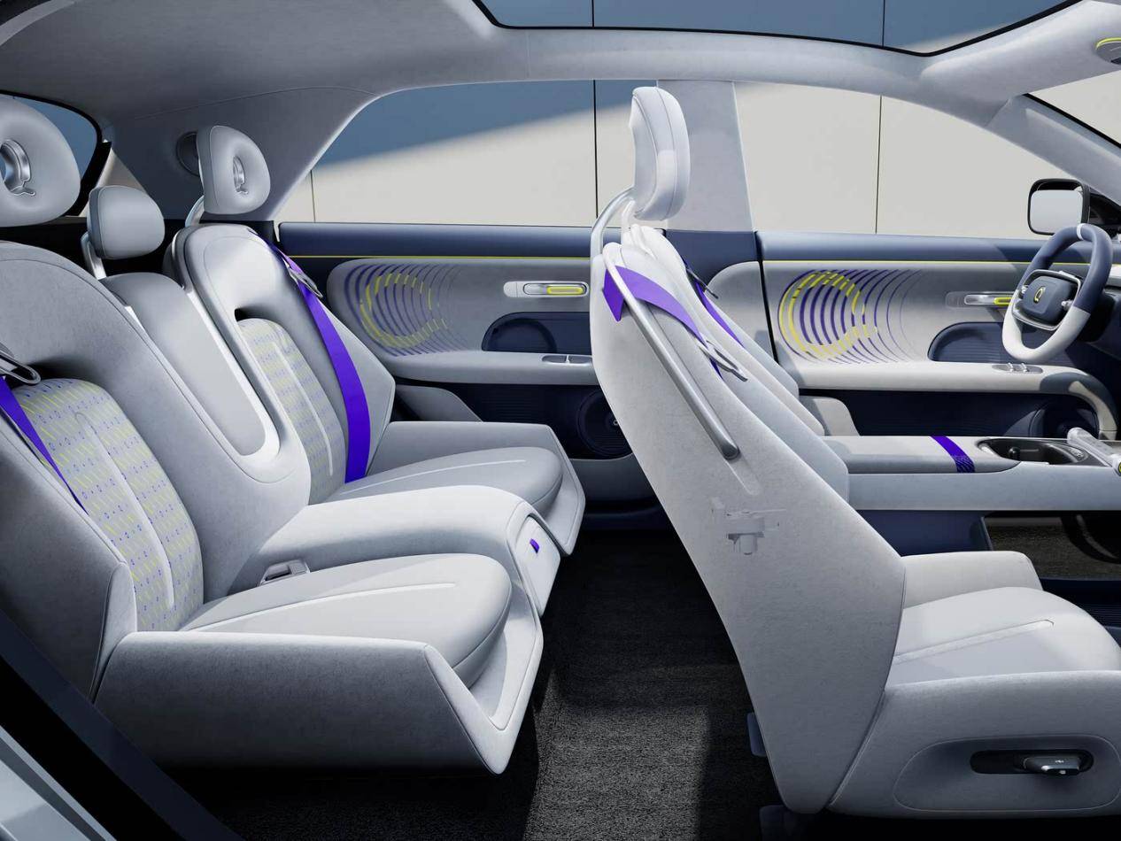 側(cè)面使用了懸浮式車頂、半隱藏式門把手以及低風(fēng)阻輪轂等等,車尾和前臉有些相輔相成的意思。