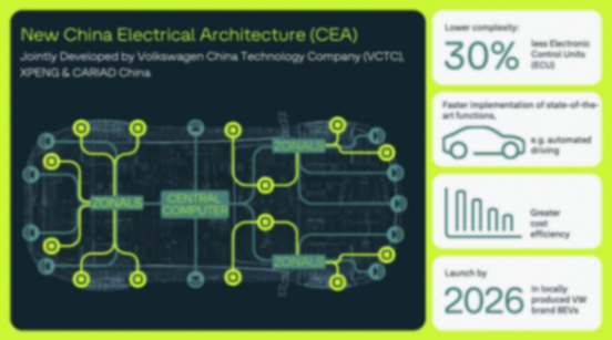 CEA是我們新一代電子電氣架構,由大眾汽車中國團隊開發。目前該平臺的核心開發完全由我們主導和掌控。自主研發使我們能夠像本土品牌一樣,實現快速的功能更新與迭代。總的來說,依托大眾汽車(中國)科技有限公司(VCTC),“在中國,為中國”的戰略使我們有能力在平臺研發速度上,與中國本土主機廠競爭。