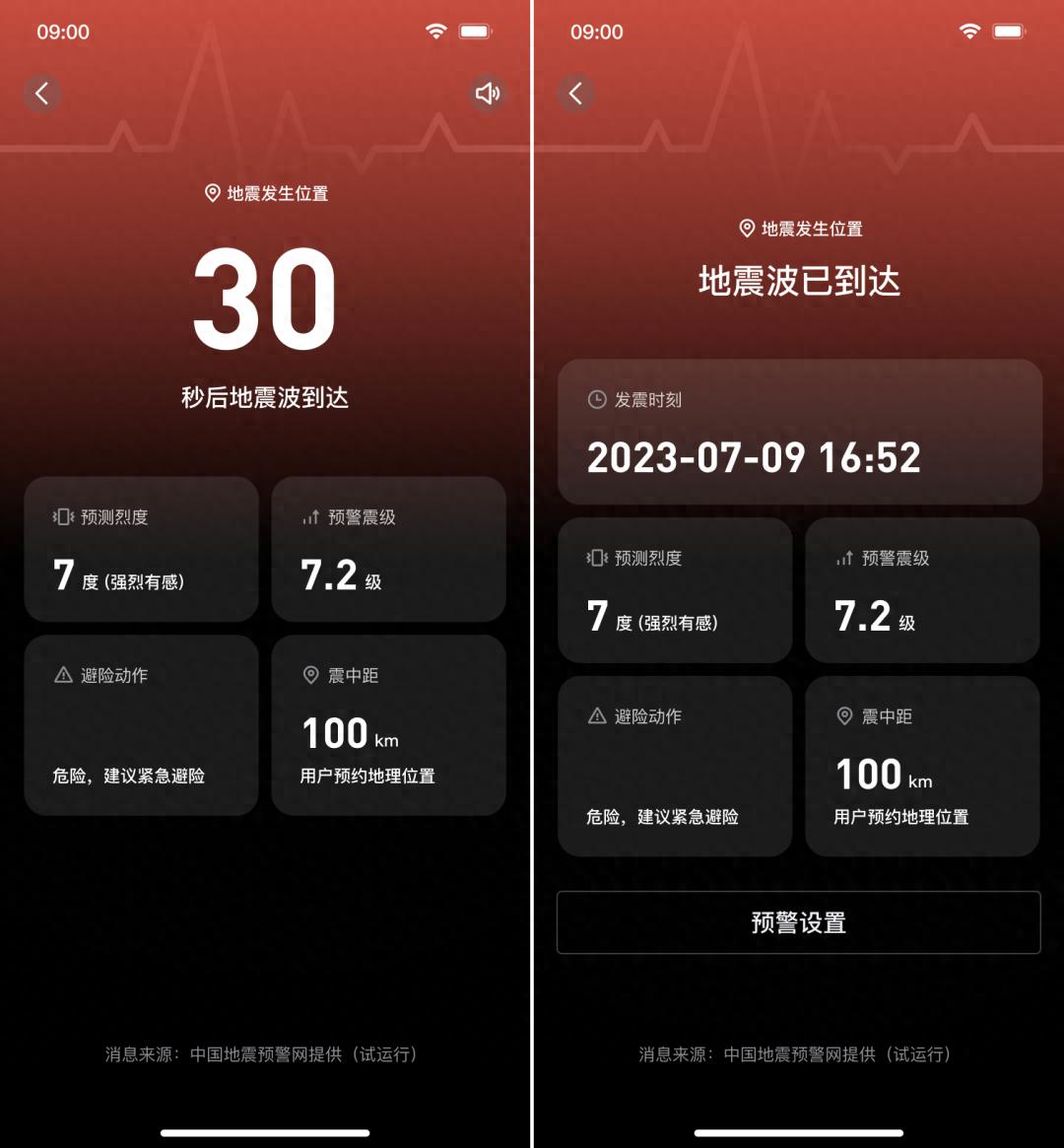 在預警通知方面,根據地震影響程度的不同,用戶會收到不同的預警顏色和提示語。