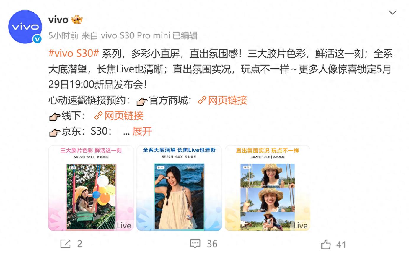 對于每一位熱愛生活、追求個性的青年來說,手機早已不僅僅是通訊工具,更是表達自我、記錄美好的伙伴。5月29日,vivo S30系列與vivo Pad5將會帶著滿滿的誠意與創意登場,讓我們一同期待vivo在今夏給我們帶來的精彩表現