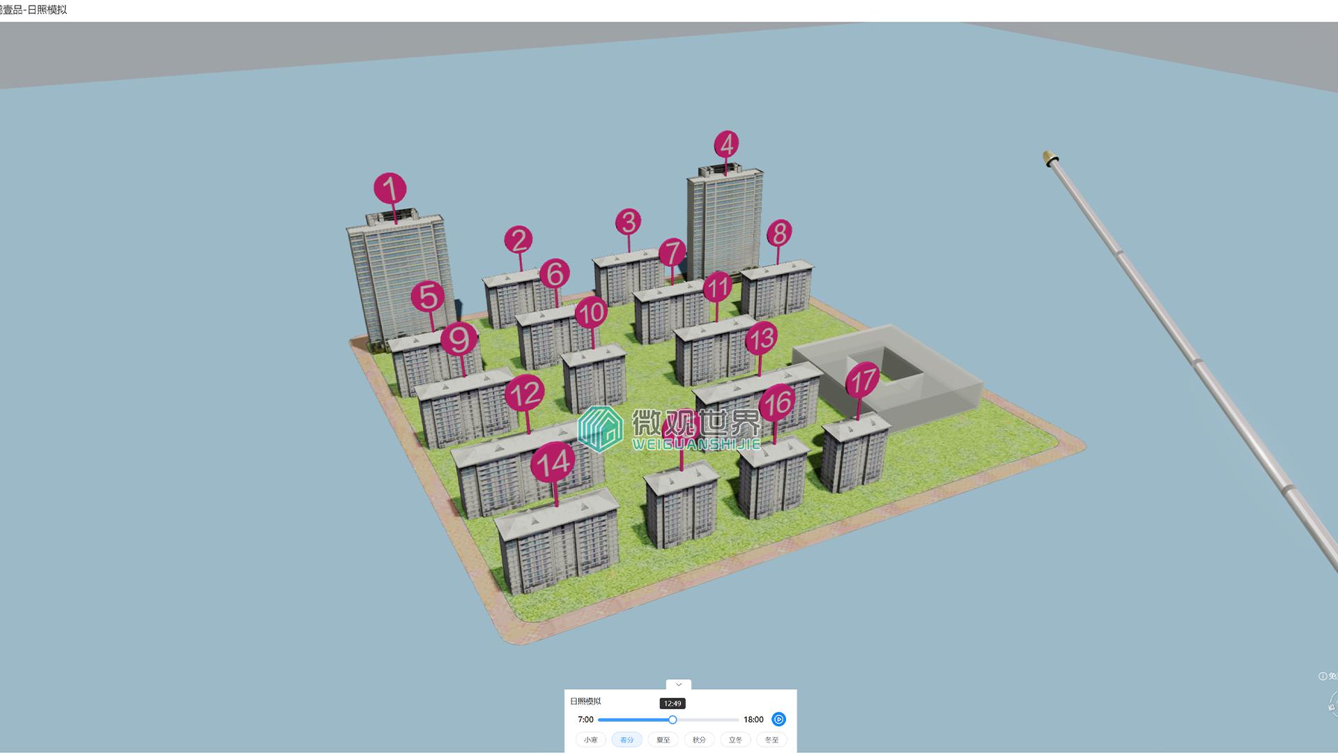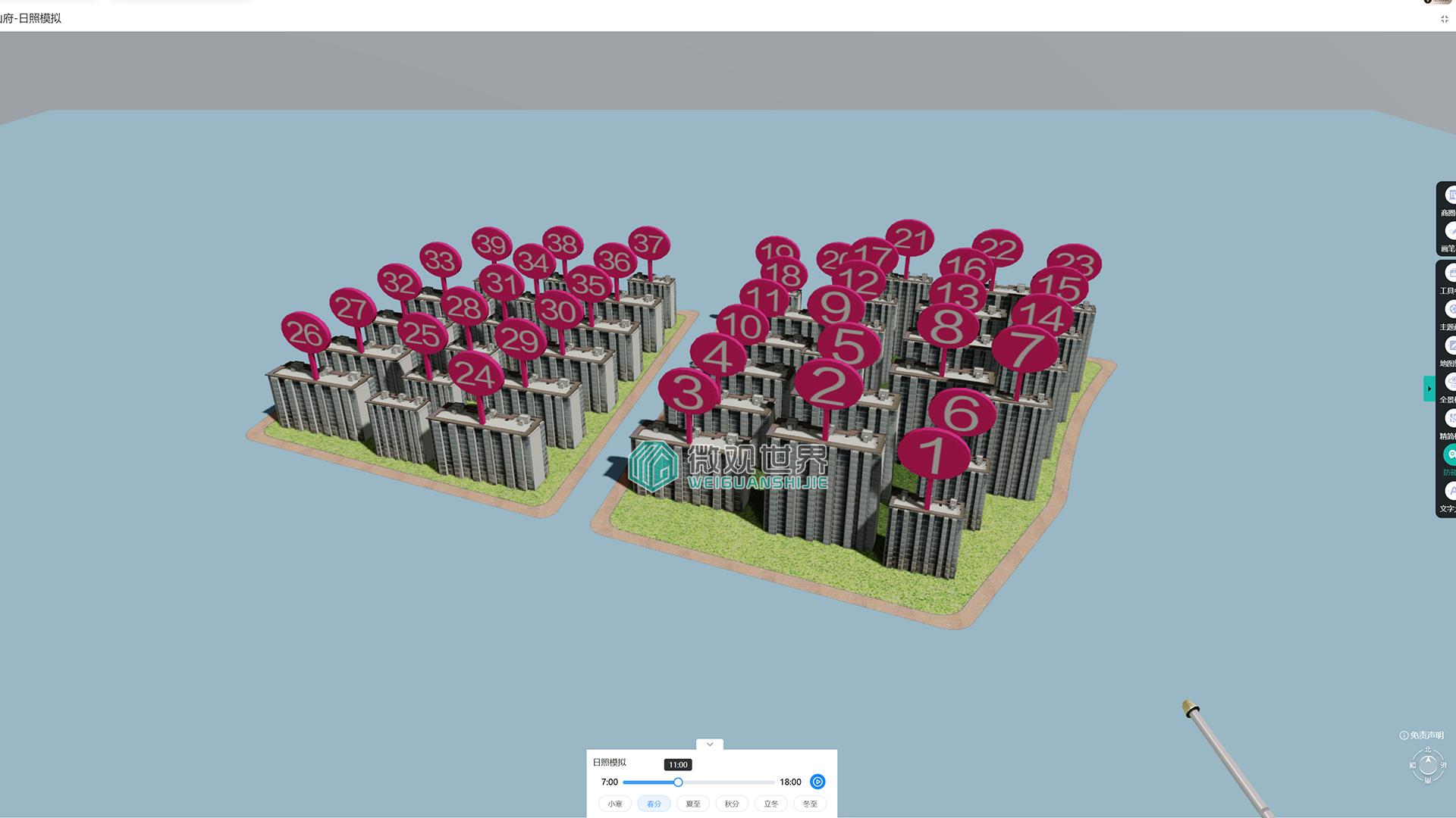 ② 購房者想進一步了解容積率下降意味著什么,一些樓盤沒有現房期房展示時,房產銷售可以用的樓盤模擬建模,重點展示里的樓間距綠化,通過沉浸式的視覺體驗,讓客戶直觀感受到低密住宅帶來的開闊感。同時,通過3D建模展示不同樓層的光照差異,突出低密地塊的稀缺性和價值,讓客戶明白現在正是抄底低密住宅的絕佳時機。