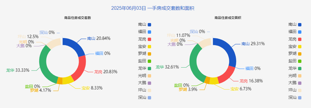分區來看,在一手房成交套數中,排名前三的分別為龍華、南山和龍崗,三區各成交8套、5套和5套。二手房成交排名前三的分別為龍崗、羅湖和福田,三區各成交48套、48套、41套。