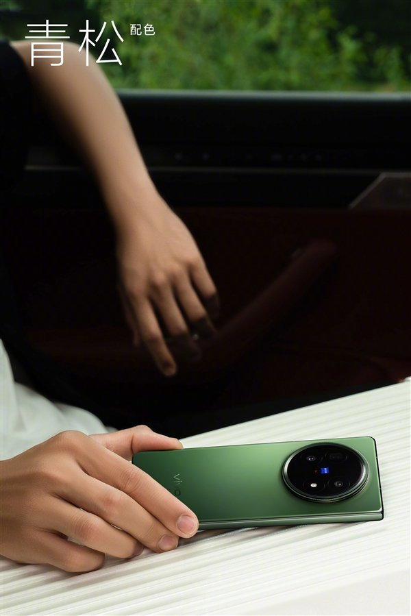 今天上午,vivo官方公布了???vivo X Fold5三款配色,包括青松、明白、鈦度,手機采用環形鏡頭設計,同時印有蔡司和T*鍍膜標識,整體簡約大氣。