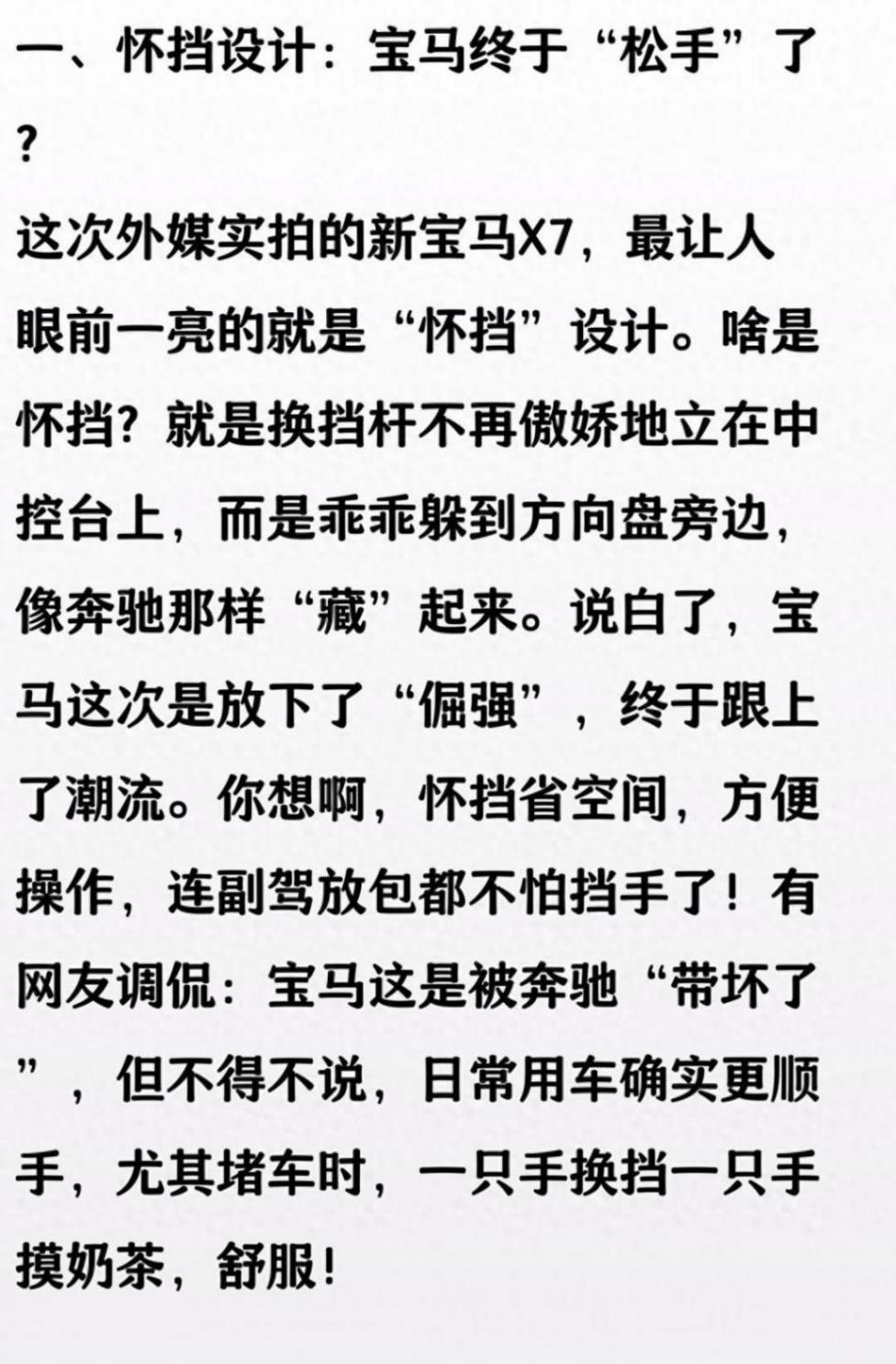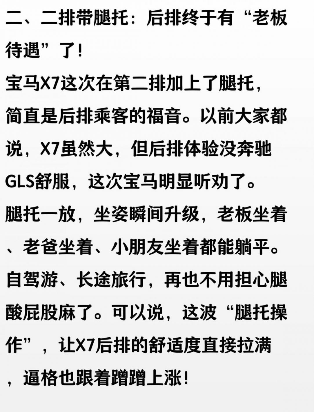 鄰居家兒子剛提了新寶馬X7,院子里停著,黑不溜秋的殼子,輪胎比我家洗衣機還大一圈,下午三點多,他爸把車門一拉開,里頭那懷擋杵在方向盤邊上,按一下就能掛檔,跟以前那大棍子不一樣。 二排座椅還帶腿托,他丈母娘一屁股坐下去,腿一伸,差點把鞋都蹬掉了,后排那小桌板還能翻出來放奶茶。我媳婦圍著車轉了一圈,摸了摸門把手,直說這車坐著比咱家炕還軟