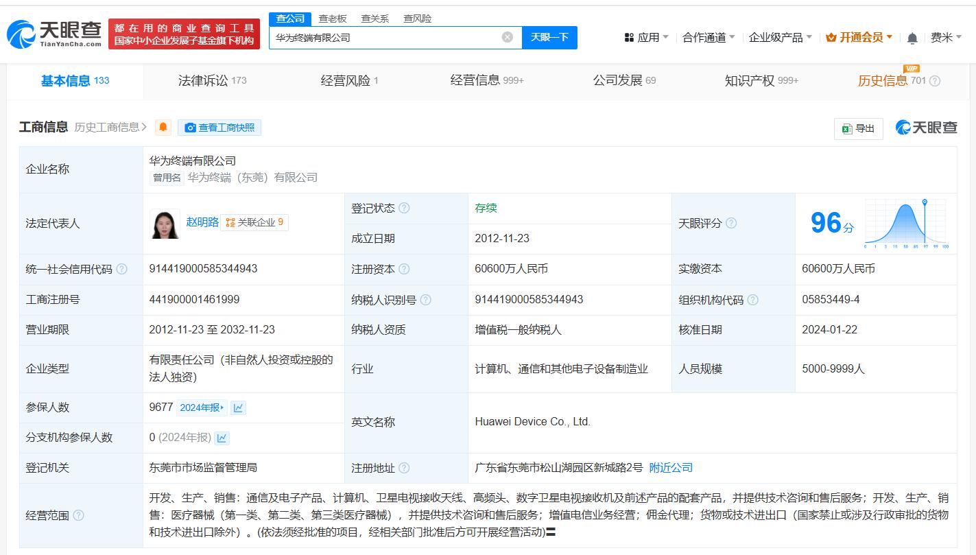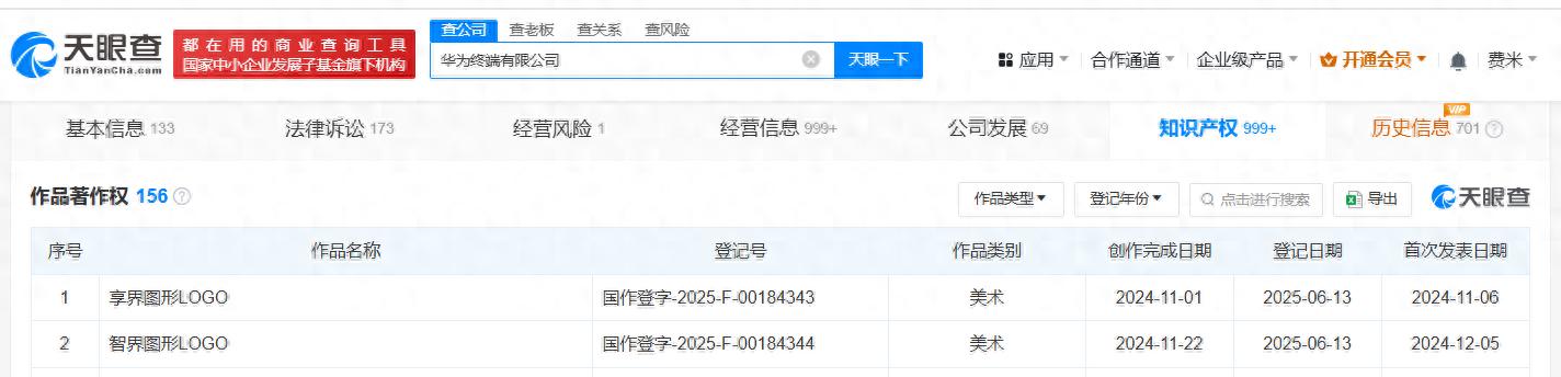 6月17日電,天眼查知識產權信息顯示,近日,華為終端有限公司登記“享界圖形LOGO”、“智界圖形LOGO”作品著作權,作品類別均為美術。華為終端有限公司成立于2012年11月,法定代表人為趙明路,注冊資本6.06億人民幣,經營范圍包括增值電信業務經營、傭金代理、貨物或技術進出口等,由華為終端(深圳)有限公司全資持股。