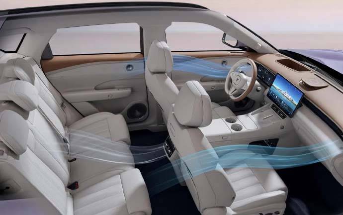 駕控性能上,新車搭載全鋁底盤、EDC可變魔毯底盤、100mm可調空氣懸架及前四球節雙叉臂懸架,行業首發“嵐擎模式”(模擬換擋+超跑聲浪),零百加速4.9秒。