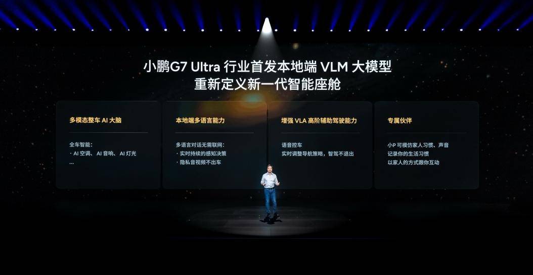 據介紹,小鵬G7 Ultra是全球首款搭載3顆圖靈AI芯片的汽車,運行兩個超級計算的大腦和小腦,圖靈AI芯片大算力從配合本地端VLA+VLM大模型使用,讓小鵬G7的智能駕駛輔助和智艙具備更強大的思考和決策能力。