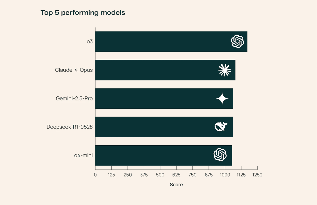 例如,o4-mini比GPT-4.1高出 2.9%,DeepSeek-R1也小勝自家模型DeepSeek-V3。