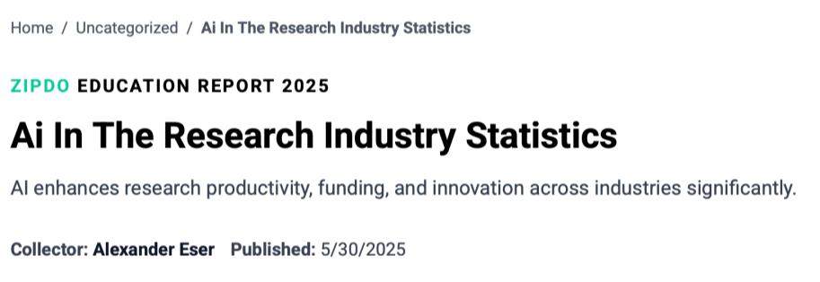 ZIPDO 2025教育報告顯示,AI已經無縫融入70%的研究實驗室,并在五年內推動相關科研論文數量增長了150%。